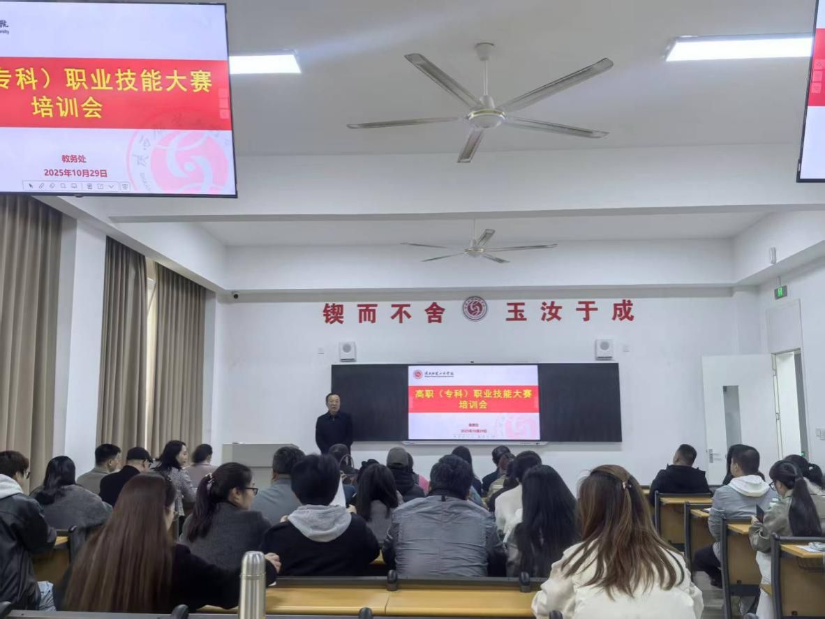 为积极备战2026年世界职业院校技能大赛,深化教育教学改革,提升师生技能水平与综合素养,特邀世界职业院校技能大赛评审专家曲新卫副教授来应用技术学院,作题为《赛场的逻辑—世界职业院校技能大赛规则与参赛》的专题讲座。副校长潘庆才、各二级学院院长及全体相关指导教师共同参加了此次讲座。