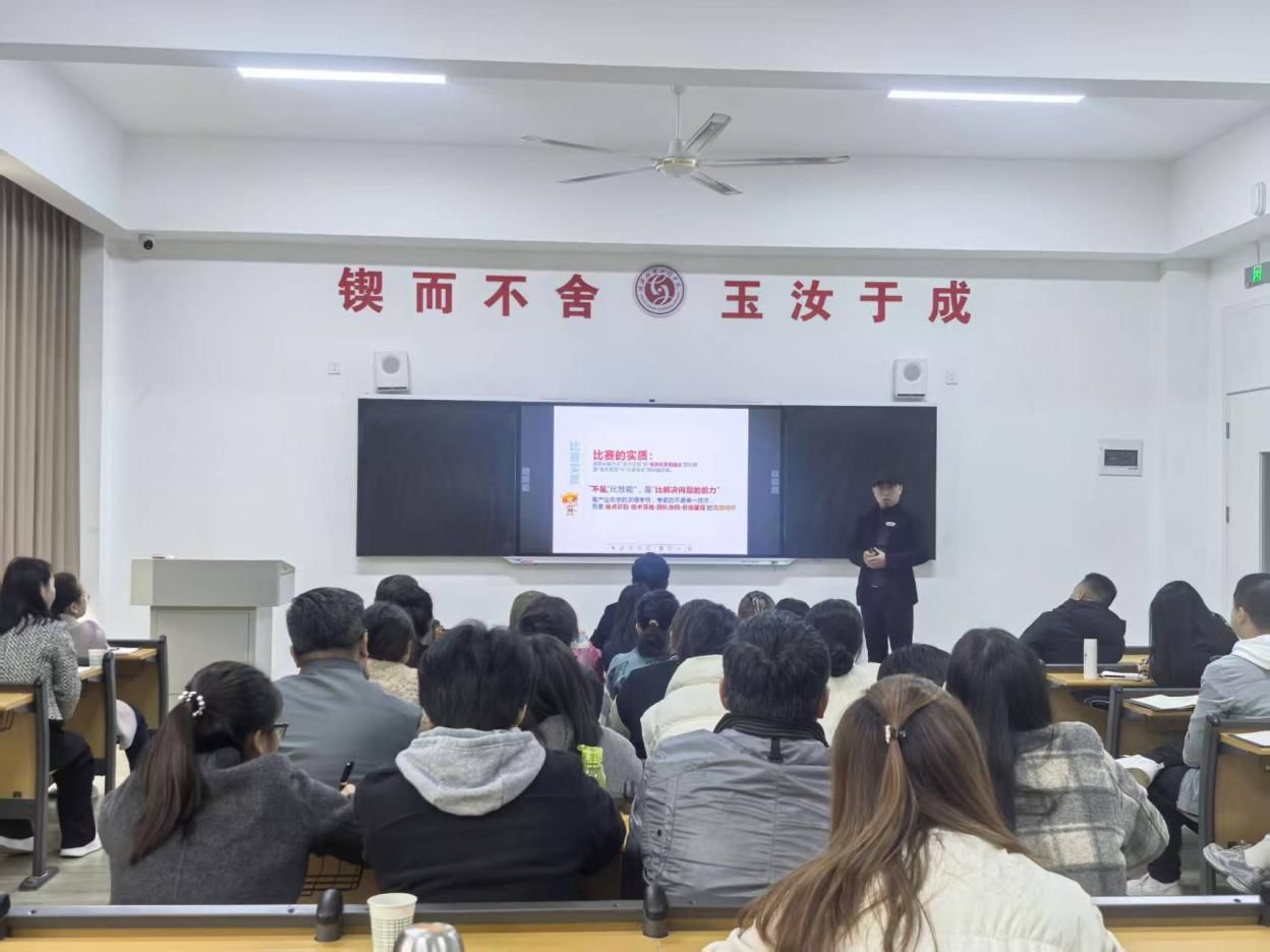 为积极备战2026年世界职业院校技能大赛,深化教育教学改革,提升师生技能水平与综合素养,特邀世界职业院校技能大赛评审专家曲新卫副教授来应用技术学院,作题为《赛场的逻辑—世界职业院校技能大赛规则与参赛》的专题讲座。副校长潘庆才、各二级学院院长及全体相关指导教师共同参加了此次讲座。潘校长作动员讲话会议伊始,潘校长作动员讲话,为备赛工作定下基调。他指出相关教师要提高站位,阐述了职业技能大赛在提升学生就业竞争力、...